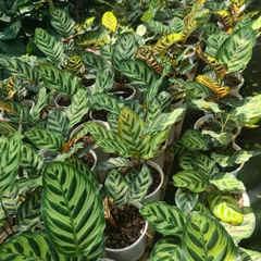 - Cây đuôi công xanh sọc trắng Tên Khoa Học: Calathea Elliptica Vittata. Tên tiếng Anh: Calathea Elliptica Vittata. Họ: Marantaceae. Chiều cao: 20-40cm - Với lá có xu hướng vót nhọn ở phía đuôi lá, mầu sắc của Cây đuôi công CALATHEA VITTATA rất bắt mắt khi được pha lẫn giữa mầu xanh lá và những đường kẻ chỉ trắng nổi bật. Cây ra lá mới thường xuyên và có xu hướng to theo chiều ngang của chậu.